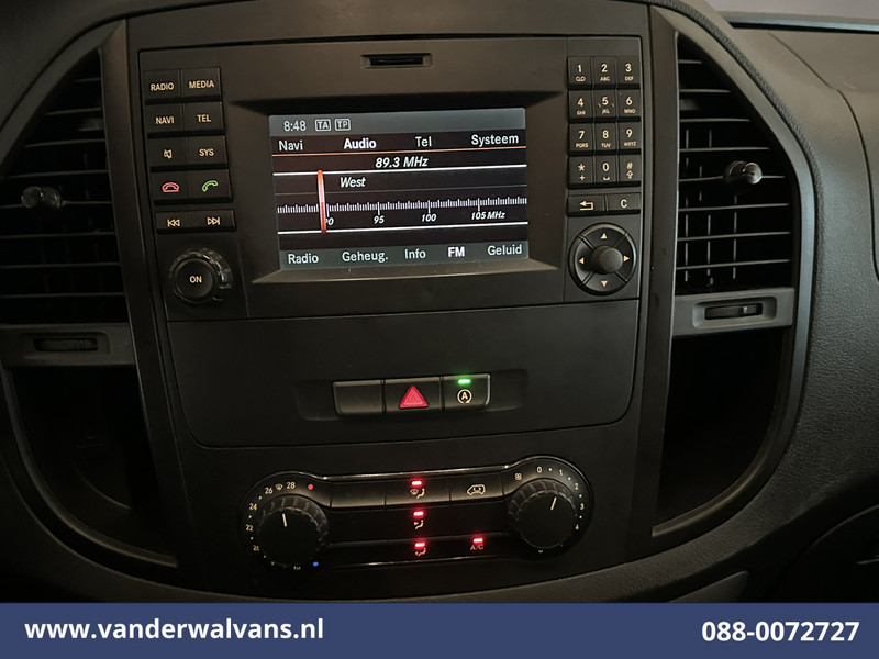 136pk sterke Mercedes-Benz Vito L2H1 Euro6 met airconditioning en camera. Deze bedrijfswagen is top onderhouden en tevens uitgevoerd met navigatie, cruisecontrol, trekhaak, parkeersensoren, stoelverwarming, bijrijdersbank en bluetooth telefoonvoorbereiding.