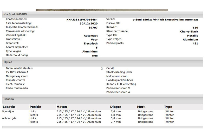 Het kan echter voorkomen dat uit de automatische voertuiginformatie een optie of accessoire naar voren komt die helaas toch niet op de auto aanwezig is.