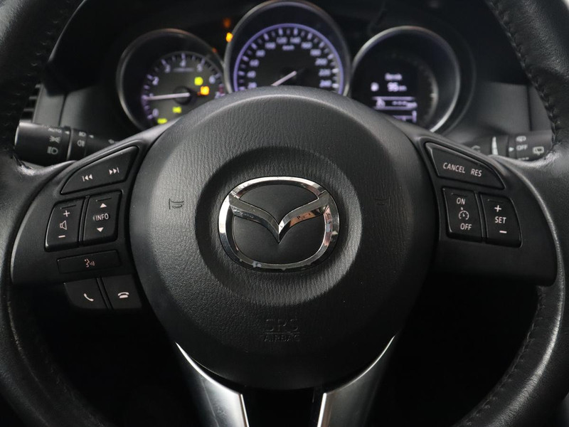 De auto is voorzien van een trekhaak en is een uitstekende caravantrekker. U kunt het audiosysteem en het full map navigatiesysteem bedienen met de knoppen op het stuur. Of het buiten nu warm is of koud, dankzij electronic climate control is het binnen altijd behaaglijk. Inparkeren zonder angst voor schade. De parkeersensoren helpen u om moeiteloos in de kleinste parkeervakken te manoeuvreren. Achter het stuur van deze Mazda bent u niet alleen. De auto kijkt als het ware met u mee tijdens de rit. De regensensor schakelt de ruitenwissers in als het nodig is en de automatisch inschakelbare verlichting doet de lichten voor u aan. Natuurlijk behoren cruise control, automatisch dimmende binnenspiegel, lederen stuur, centrale deurvergrendeling met afstandsbediening, bagage afdekhoes en boordcomputer ook tot de uitrusting van deze complete auto.