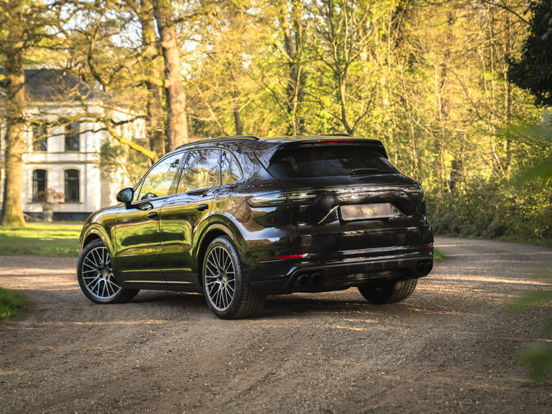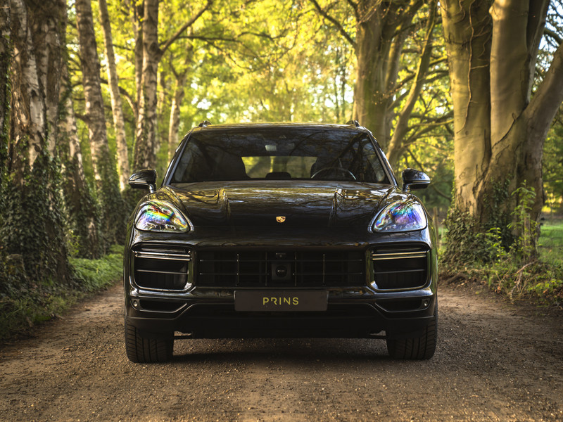 Bij de introductie van de Cayenne vroeg de wereld zich hardop af of sportwagenbouwer Porsche helemaal de weg kwijt was. Diezelfde wereld viel echter als een blok voor de mogelijkheid om elke dag in een performance-gedreven auto te kunnen sturen, inclusief het comfort van een volwaardige familiewagen. Inmiddels zijn we een paar generaties verder en kunnen we zeggen dat de Porsche Cayenne een doorslaand succes is gebleken. De evolutie van de SUV is duidelijk zichtbaar, maar hetzelfde geldt voor de 911-invloeden waarop de Cayenne traditiegetrouw leunt. De karakteristieke koplampen zijn in dit specifieke geval van het type LED-Matrix en beschikken over Porsche Dynamic Light System Plus voor een optimale, kristalheldere lichtbundel onder alle omstandigheden. Medeweggebruikers verblinden doet het systeem niet. En ook qua kleurstelling heeft uw voorganger het bescheiden gehouden: Diepzwart metallic gecombineerd met zwart gelakte exterieurdetails zoals de raamlijsten, dakrails en grille. Zwart zijn tevens de sporteindstukken van het uitlaatsysteem. Daarnaast doen Privacy Glass en het donkere glas voor de LED-achterlichten een duit in de mysterieuze uitstraling van deze Cayenne Turbo. Tot slot staat de Porsche op 21 inch grote Cayenne Exclusive Design velgen inclusief donkere inlay en erachter gele remklauwen die duiden op de indrukwekkende stopkrachten van de keramische remmerij.