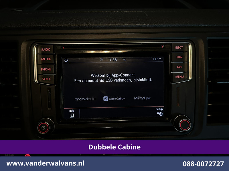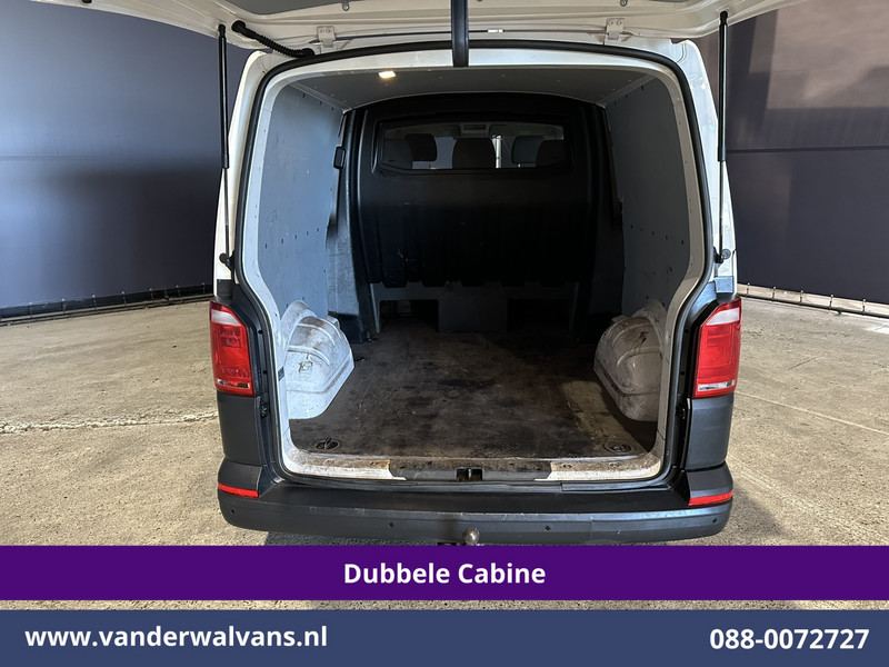 150pk sterke Volkswagen Transporter L2H1 Dubbel cabine Euro6 met airconditioning, 5 zitplaatsen en navigatie. Deze dealer onderhouden Transporter is voorzien van Apple Carplay, Android Auto, cruisecontrol, 2500kg trekhaak, parkeersensoren, achterklep en bluetooth telefoonvoorbereiding.