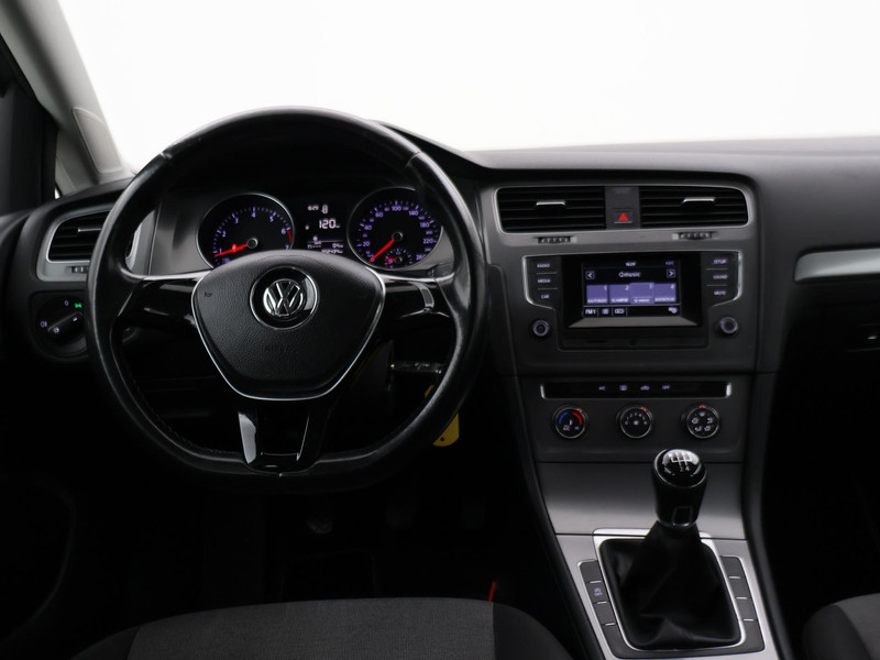 5-Ddeurs Golf 7 / Golf VII van 11-2012, 1.2 TSI handgeschakeld 5-deurs, Exterieurkleur: Tungsten Silver metallic, Origineel Nederlandse auto, Trendline uitvoering, Airco, Elektrische ramen voor en achter, Cruise control, Leder stuurwiel, Lichtmetalen velgen, Middenarmsteun, Touch-screen radio.