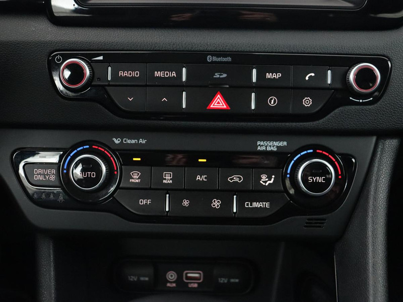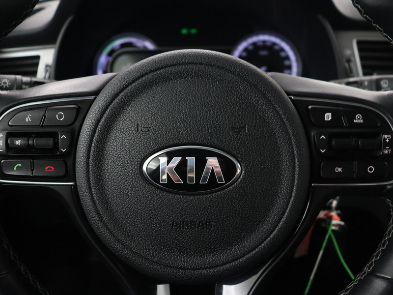 De achteruitrijcamera maakt inparkeren gemakkelijker dan ooit. Deze auto kent elke bestemming als z'n broekzak, dankzij het full map navigatiesysteem. Natuurlijk is er ook electronic climate control aanwezig. Ook lekker handig is de audiobediening op het stuur. Het luxeniveau in deze Kia is niet alleen gericht op comfort, maar ook op uw veiligheid. Tal van sensoren helpen u om de omgeving in de gaten te houden. De automatisch inschakelbare verlichting zorgt dat automatisch de verlichting wordt ingeschakeld als het donker wordt, wat bijvoorbeeld in tunnels erg handig is. En de regensensor zet de ruitenwissers aan zonder dat u eraan hoeft te denken. Deze auto is voorzien van cruise control, automatisch dimmende binnenspiegel, lederen stuur en versnellingspook en centrale deurvergrendeling met afstandsbediening.