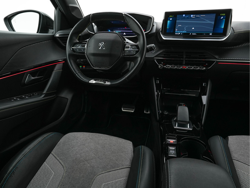 ⭐ Peugeot e-208 EV GT-Line 350 50 kWh, automaat, 3-Fase – in Black Pearl met luxe GT-Line lederen/alcantara interieur in zwart/grijs | Elektrisch, Stijlvol en Vol Technologie