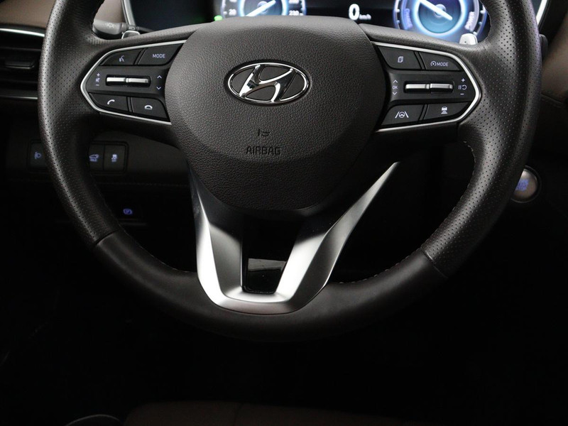Wat ook opvalt, is de strakke en overzichtelijke informatie die het digitale dashboard levert. Met de 360 graden camera op deze auto wordt parkeren in smalle parkeerplekken een makkie dankzij het optimale zicht dat het apparaat levert. Adaptive cruise control houdt de ingestelde snelheid vast en houdt afstand tot het voertuig voor u. Deze Hyundai Santa Fe is voorzien van remote services. Via uw smartphone bedient u diverse functies ook op afstand en krijgt u informatie over de status van uw auto. Het high performance audiosysteem is volledig afgestemd op de akoestiek van de auto; genieten dus! De Hyundai is standaard voorzien van: dashboard met spraakbediening, full map navigatiesysteem, kruisend verkeer detectie, automatische airconditioning, draadloos opladen en DAB ontvangst.