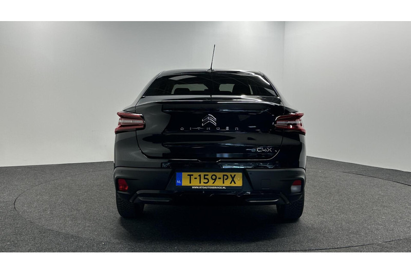 Alle functies die u onderweg nodig heeft, worden permanent geregistreerd en zijn afleesbaar op het digitale dashboard. Spraaksturing luistert naar uw stem en bedient de belangrijkste voertuigfuncties. Zoals u van zo'n jonge auto mag verwachten, zijn hier ook de geavanceerde remote services aanwezig. Simpelweg met een app op uw smartphone controleert u op afstand de status van de auto en bedient u diverse functies. Deze auto kent elke bestemming als z'n broekzak, dankzij het navigatiesysteem. Aan boord van deze Citroen Ë-C4 X is een achteropkomend verkeer waarschuwing voor extra veiligheid. Natuurlijk behoren automatische airconditioning, DAB ontvangst, parkeersensoren achter, regensensor, cruise control en lederen stuur ook tot de uitrusting van deze complete auto.