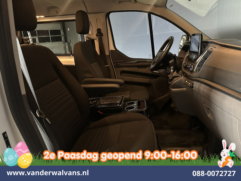 170pk sterke Ford Transit Custom L2H1 Euro6 dubbel cabine met airconditioning, 5 zitplaatsen en dubbele zijdeur. Dealer onderhouden en voorzien van camera, navigatie, Apple Carplay, Android Auto, LED, cruisecontrol, verwarmde voorruit, trekhaak, parkeersensoren en bluetooth telefoonvoorbereiding.
