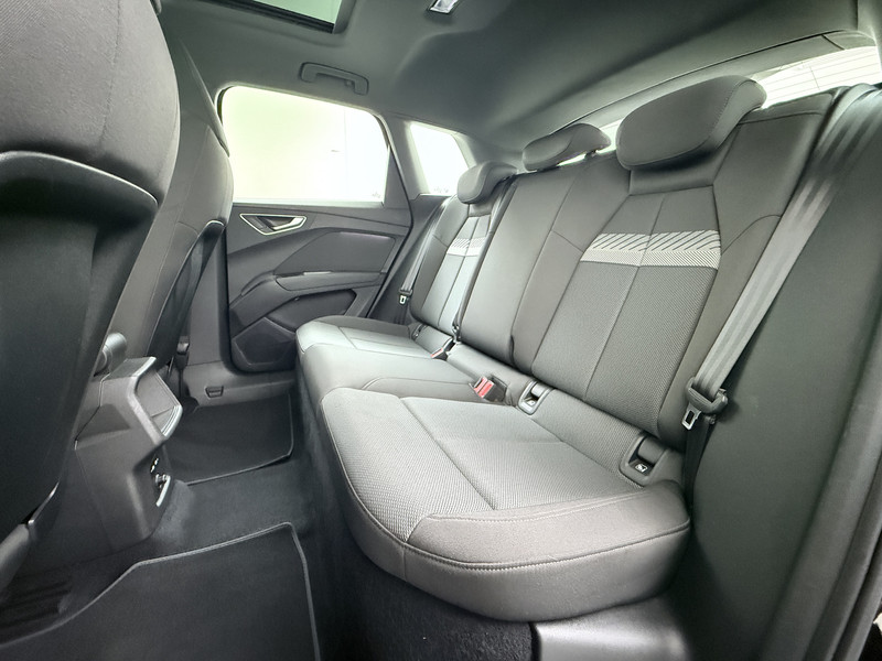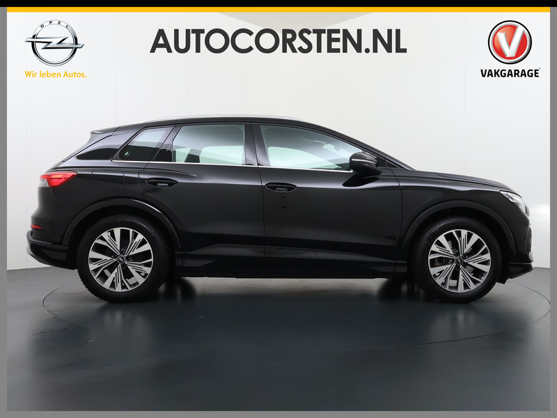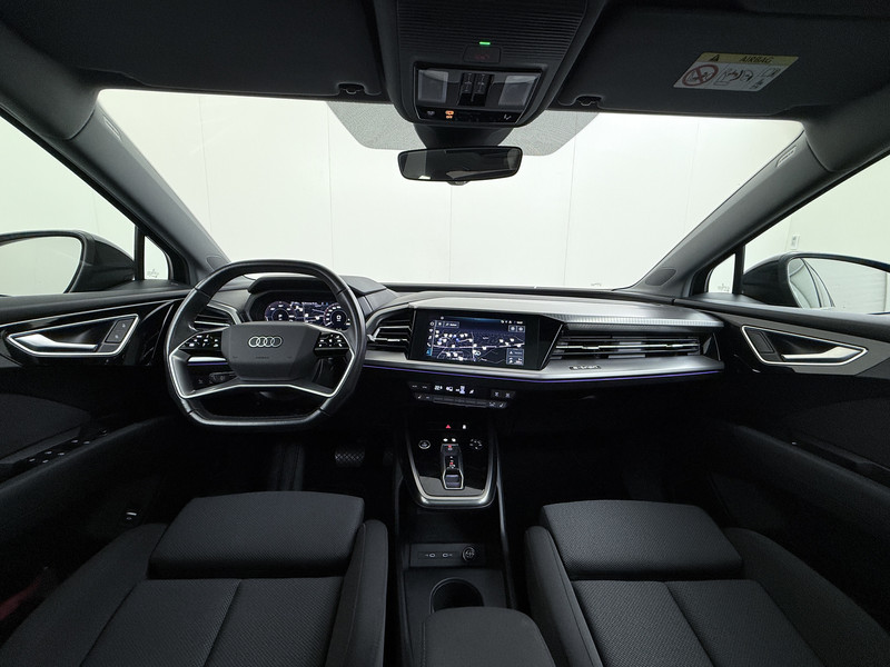 Kijk naar de onvergelijkbare vormgeving. De Audi Q4 e-tron is een elektrische auto die zijn bijzondere karakter niet voor de buitenwereld verbergt. Dankzij de geavanceerde batterijtechnologie hebt u met deze auto een rijbereik dat ruim voldoende is voor de meeste dagelijkse ritten. En u zult zien, de tijd die nodig is om de batterij op te laden, valt enorm mee. Een krachtige motor geeft deze auto zijn sportieve prestaties. Gemak is alles. Daarom heeft deze auto een elektrisch bediend glazen panorama dak en een elektrisch bedienbare achterklep. Koude start? Niet met de verwarmbare voorstoelen! De sportstoelen zorgen ervoor dat u goed en comfortabel zit, ook als het gas erop gaat. De slimme koplampen gebruiken de allernieuwste matrix LED-verlichting. Altijd maximaal zicht, nooit verblinding bij de tegenligger. Bij de zeer complete uitrusting van deze auto behoren ook 19 inch lichtmetalen velgen, zwarte hemelbekleding, getint glas, in delen neerklapbare achterbank en LED-achterlichten.