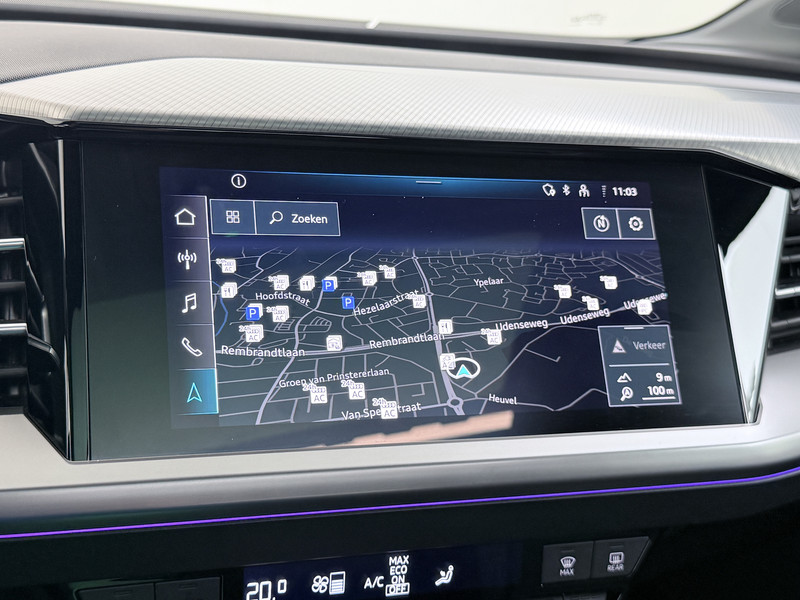 U geniet nog meer van het rijden met uw Audi omdat u wordt beschermd door intelligente veiligheidssystemen. In het instrumentarium kunt u bovendien de verkeersborden zien die u onderweg tegenkomt. Zo helpt deze Audi u om veiliger te rijden. Deze Audi Q4 e-tron is ook behulpzaam als het gaat om een rechte koers. Het Lane-keeping systeem signaleert en corrigeert als u onbedoeld de rijstrooklijnen dreigt te overschrijden.