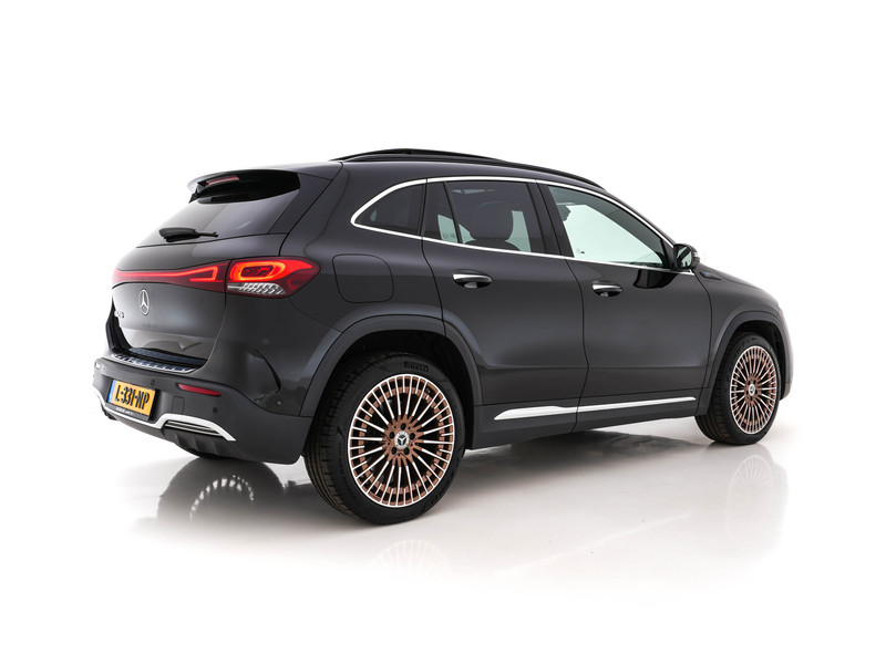 Een optimaal rijbereik, geen emissies en probleemloze techniek. Met de Mercedes-Benz EQA haalt u een elektrische auto van topklasse in huis. De elektromotor laat u geluidloos over de weg gaan. Wat een verademing, en zoveel power ook nog! Het elegante exterieurdesign krijgt een sportieve impuls met het AMG-styling pakket. Deze goed onderhouden auto is van de eerste eigenaar. De krachtige motor geeft deze Mercedes-Benz uitstekende prestaties. Van binnen lijkt het allemaal uitermate ruim dankzij de vrije inval van daglicht via het elektrisch bediende glazen panorama dak. Comfort en luxe? Dat krijgt u door het lederen interieur. En optimaal gemak is er in de vorm van de elektrisch bedienbare achterklep. U past de stoelen moeiteloos aan, ze zijn elektrisch in te stellen en hebben bovendien een geheugen. Ook 20 inch lichtmetalen velgen, LED koplampen, AMG-styling, warmtewerend glas, zwarte hemelbekleding en aluminium dakrailing zijn aan boord.