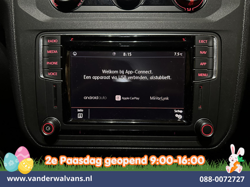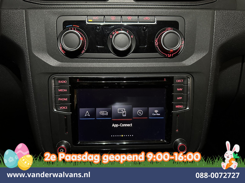 Zuinige Volkswagen Caddy L1H1 Euro6 met airconditioning en navigatie. Dealer onderhouden en uitgevoerd met Apple Carplay, Android Auto, cruisecontrol, parkeersensoren en bluetooth telefoonvoorbereiding.