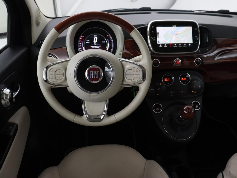 Intelligent en praktisch, de Fiat 500 staat bekend om zijn handzaamheid en zijn kwaliteit. De aandrijving van deze Fiat wordt verzorgd door een tweecilinder benzinemotor en een handgeschakelde zesversnellingsbak. Niet voor niks geldt een lederen interieur al jaren als een luxe extra. U krijgt het er gewoon bij, net als het elektrisch bediende glazen panorama dak. Xenonverlichting zorgt voor een krachtige en heldere lichtbundel. In deze Fiat profiteert u onder andere ook van: 16 inch lichtmetalen velgen, in delen neerklapbare achterbank en snelheidsafhankelijke stuurbekrachtiging.