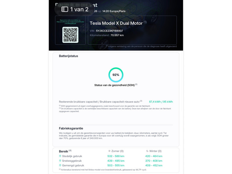 Actieradius (volgens fabrikant) 542 KM -