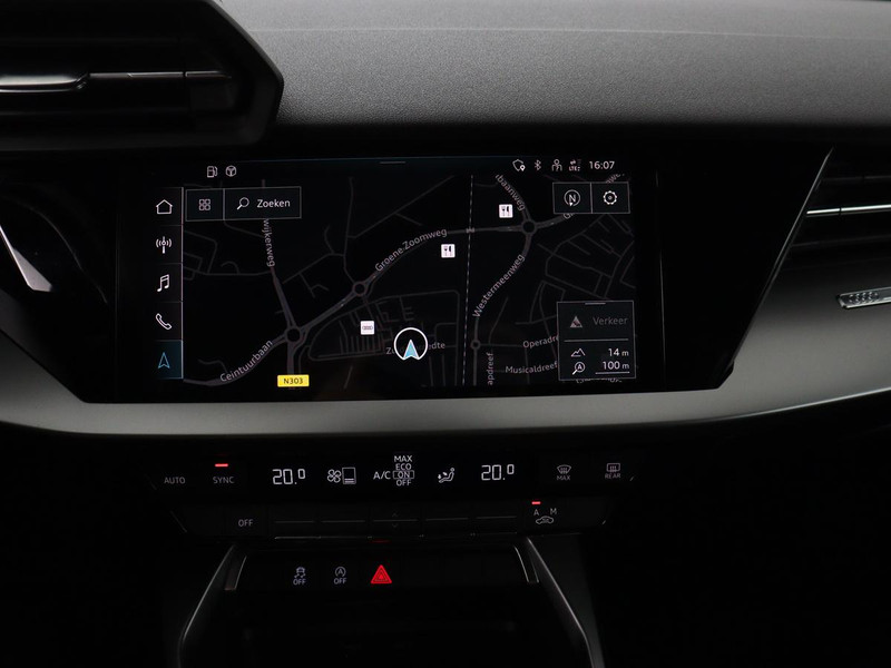 Neem plaats in de cockpit, start de motor en voel het vermogen. Met deze sportieve Audi A3 hebt u altijd de controle. In deze auto vindt u een benzinemotor en een automatische transmissie. Mooi om te zien en heerlijk om in te zitten zijn de sportstoelen, die u onderweg optimale ondersteuning geven. U wordt in deze auto ook getrakteerd op 18 inch lichtmetalen velgen, Full LED koplampen, dakspoiler, in delen neerklapbare achterbank, LED-achterlichten en verwarmde ruitensproeiers.