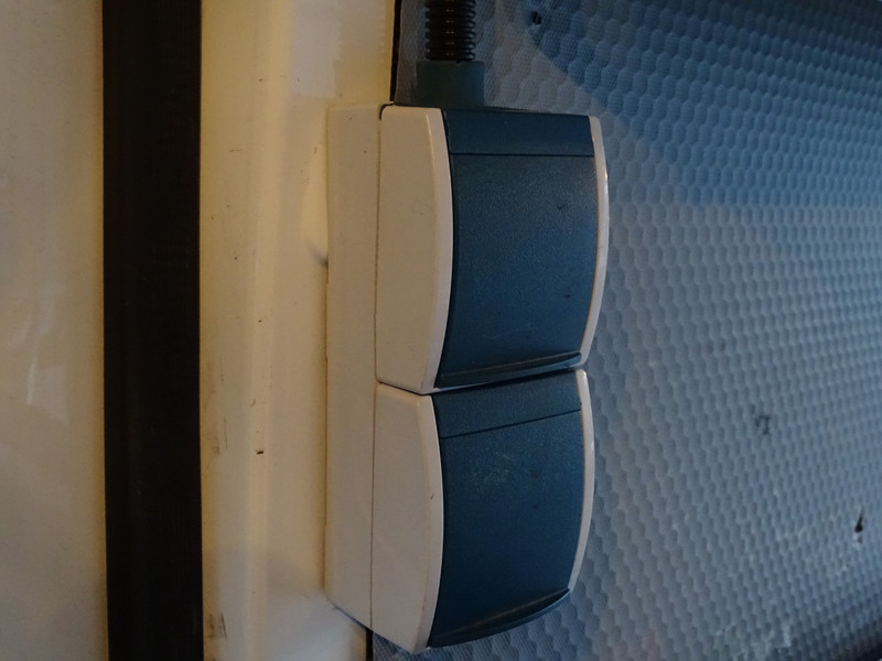 Daarnaast is de bus uitgerust met een volledige stroomvoorziening in de laadruimte. Op de foto’s is onder andere een 230V stopcontact zichtbaar, evenals schakelaars en bekabeling die netjes zijn weggewerkt. Dit maakt het mogelijk om direct elektrisch gereedschap of apparatuur in de bus te gebruiken. Ook is er interieurverlichting aanwezig, waardoor de laadruimte goed verlicht is, zelfs bij weinig daglicht.