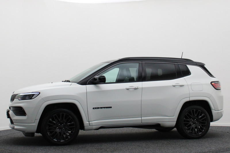 De Jeep Compass is gebouwd met hoogwaardige techniek en maakt het rijden van lange ritten, maar ook korte stukjes, tot een feestje. Een viercilinder motor en een automatische transmissie zorgen voor de uitstekende prestaties van deze auto. De vierwielaandrijving is natuurlijk ideaal op steile paadjes en landelijke weggetjes, maar net zo praktisch op vlakke Hollandse wegen waar de regen en natte sneeuw net wat meer vragen van de grip op de weg. Altijd al een voorliefde gehad voor een lederen interieur? Deze heeft het. Evenals een elektrisch bedienbare achterklep. De verwarmbare voorstoelen zijn een heerlijke extra optie, waarmee u uzelf en uw bijrijder een groot plezier doet. Aan een fijn opwarmertje in de kille dagen is gedacht, in de vorm van een verwarmd stuurwiel. Bij de uitrusting van deze Jeep horen onder meer 19 inch lichtmetalen velgen, bochtverlichting, zwarte hemelbekleding, donker getint glas achter, in delen neerklapbare achterbank en LED-achterlichten.