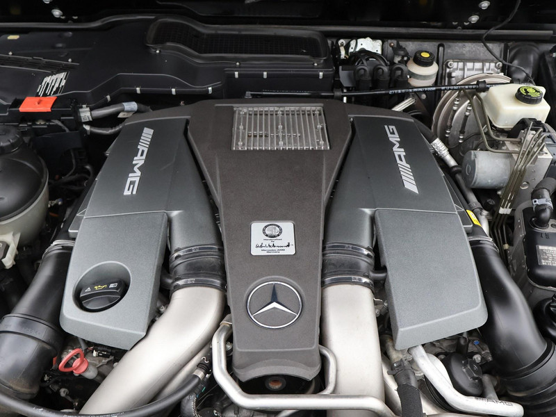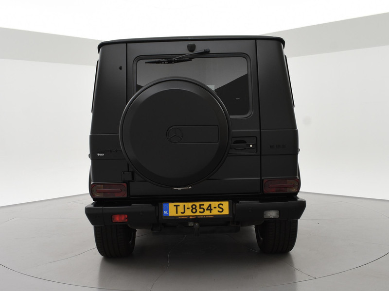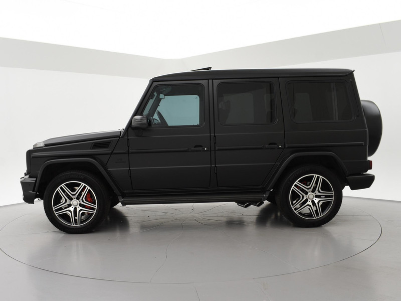 G63 AMG 5.5 V8 Bi-Turbo 544 PK 4X4 met 7-traps automaat, Nieuw geleverd in Duitsland, dus originele EU uitvoering, Nederlands kenteken is uit 2018. Registratie/bouwjaar 11-2013 maar modeljaar 2014 in de wagenkaart, RDW nieuwprijs 234.497 euro. In 2024 compleet gewrapt in het mat zwart: Satin Black, zoals de originele fabriekskleur op het nieuwste type. Tevens zijn in 2024 de beide uitlaatdempers vervangen (origineel van Mercedes-Benz). In 11-2024 nog onderhoud gehad. Diverse onderhoudsfacturen aanwezig. De fabriekskleur onder de wrap is glanzend zwart: Obsidian black metallic exterieurkleur met Designo zwart leder exclusief interieur met ruitjes stiksels in de stoelen en deurpanelen, Designo exclusief pakket met zwarte alcantara hemelbekleding, Designo trim Piano Lacquer black dashboard inleg, Designo hout/leder stuurwiel met zwart pianolak hout, Zwarte exterieurstyling: zwarte logo's, type aanduidingen, stootlijsten, raamlijsten, treeplanken etc. Rear Entertainment origineel DVD Multimedia entertainment pakket vanaf fabriek (optiecode EM7) met Mercedes-Benz schermen met DVD speler en draadloze headsets, 20 inch AMG velgen met rode AMG remklauwen, Standkachel origineel vanaf fabriek met afstandsbediening, 4 AMG uitlaten voor de achteras onder de treeplanken, Distronic+ Adaptive cruise control, Comand Online Navigatiesysteem, Dodehoek detectie, Harman/Kardon premium sound met Logic7 geluid, Multicontourstoelen met breedteregeling en lendesteun, Stoelventilatie, Stoelverwarming voor + achterin, Elektrisch schuif/kanteldak, DVD/CD-wisselaar voorin, Bluetooth telefoon + audiostreaming voor o.a. Spotify, Achteruitrijcamera, Privacy glass, HomeLink universele garagedeur afstandsbediening in de binnenspiegel, Elektrische stoelverstelling en stuurwielverstelling met geheugen, Elektrisch inklapbare buitenspiegels, Bi-Xenon koplampen, LED dagrijverlichting, Elektrisch verwarmbare voorruit, Climate control met links/rechts gescheiden temperatuur, Bagagenet verticaal + rolhoes horizontaal, Trekhaak met 3.500 kg trekgewicht op kenteken, Verlichte AMG dorpellijsten, Parktronic parkeersensoren voor + achter, AMG Speedshift Plus 7G-tronic automaat, 4X4 met sper voor-midden-achter, M157 motor, Reservewiel met hardcover, Isofix in de achterbank, Nieuw type grille.