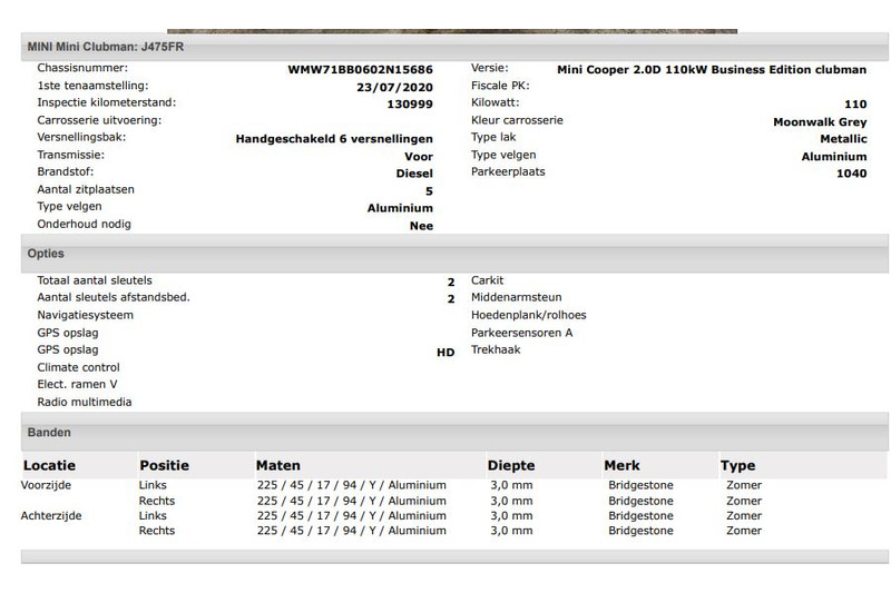 Het kan echter voorkomen dat uit de automatische voertuiginformatie een optie of accessoire naar voren komt die helaas toch niet op de auto aanwezig is.
