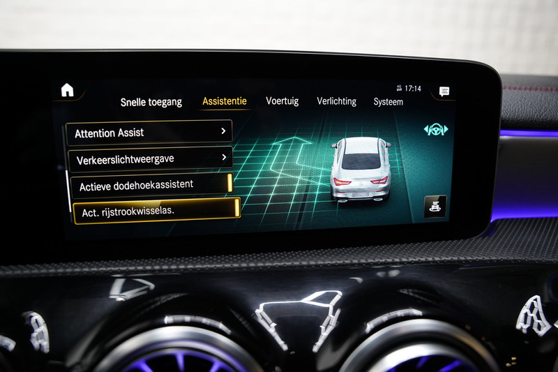 Zoals u mag verwachten van deze Mercedes-Benz CLA-klasse is hij uitgerust met een reeks aan actieve veiligheidssystemen. In het instrumentarium kunt u bovendien de verkeersborden zien die u onderweg tegenkomt. Zo helpt deze Mercedes-Benz u om veiliger te rijden. Onbedoeld buiten de rijstrook raken wordt voorkomen door het Lane-keeping systeem. Een korte blik over uw schouder bij inhalen of afslaan is niet altijd genoeg. De actieve dodehoekdetectie helpt de veiligheid te vergroten. Ook helpen het head-up display, accident avoidance system, forward collision warning system, brake assist, vermoeidheidsherkenning en bandenspanningcontrolesysteem, uw rit tot een veilige rit te maken.