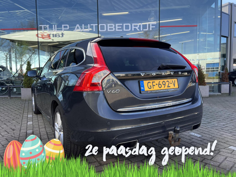 De auto is voorzien van een trekhaak en is een uitstekende caravantrekker. Op een drukke weg heeft u soms ogen in uw achterhoofd nodig. De sensoren aan de achterzijde nemen die functie over en geven een achteropkomend verkeer waarschuwing als een achterligger te dicht op u zit. Het spreekt voor zich dat een auto als deze ook van electronic climate control is voorzien. Muziek aan, muziek uit? Het kan met een simpele vingerbeweging dankzij de audiobediening op het stuur! Een plekje vinden in de binnenstad is één, inparkeren is twee. Voor dat laatste heeft deze Volvo V60 prima parkeersensoren die u een handje helpen. En deze auto heeft ook regensensor, cruise control, automatisch dimmende binnenspiegel, isofix-aansluiting, centrale deurvergrendeling met afstandsbediening en bagage afdekhoes als standaard uitrusting.