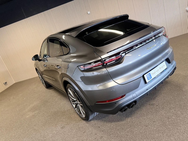 De Porsche Cayenne Coupé combineert comfort met een uitstekende wegligging en dynamische rijkwaliteiten. Een krachtige motor geeft deze auto zijn sportieve prestaties. Glibberen of glijden is er met deze vierwielaandrijving niet bij. Op deze 4WD kunt u onder alle omstandigheden rekenen. En wat heeft deze auto nog meer in petto? Om te beginnen zien we het lederen interieur, dat een sfeer van luxe meebrengt. Maar als u gaat voor gemak, wordt u ook niet teleurgesteld. Kijk eens naar die elektrisch bedienbare achterklep! 's Winters komen de verwarmbare voorstoelen heerlijk van pas. Met het grote glazen panoramadak geniet u van maximale lichtinval. Pak aan, 't is winter! Zo'n verwarmd stuurwiel is dan bijzonder prettig! Ook 21 inch lichtmetalen velgen, LED koplampen, adaptief dempingsysteem, warmtewerend glas, dakspoiler en in delen neerklapbare achterbank zijn aan boord.